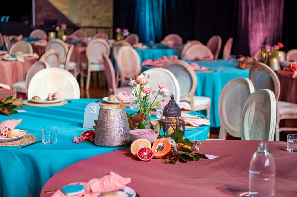 Layered into these builds are florals and styling, which elevate the sensory appeal and add warmth, texture, and cohesion to the space. Fresh or dried floral installations can create moments of softness or drama, while curated styling—through furniture, props, textiles, and décor—enhances the environment and helps create a mood that aligns with the brand’s vision.