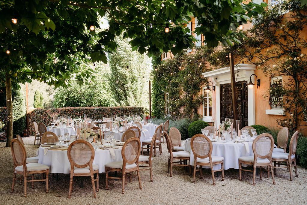 Since private properties typically lack standard wedding infrastructure, renting key items will be essential. Depending on your style, consider hiring: