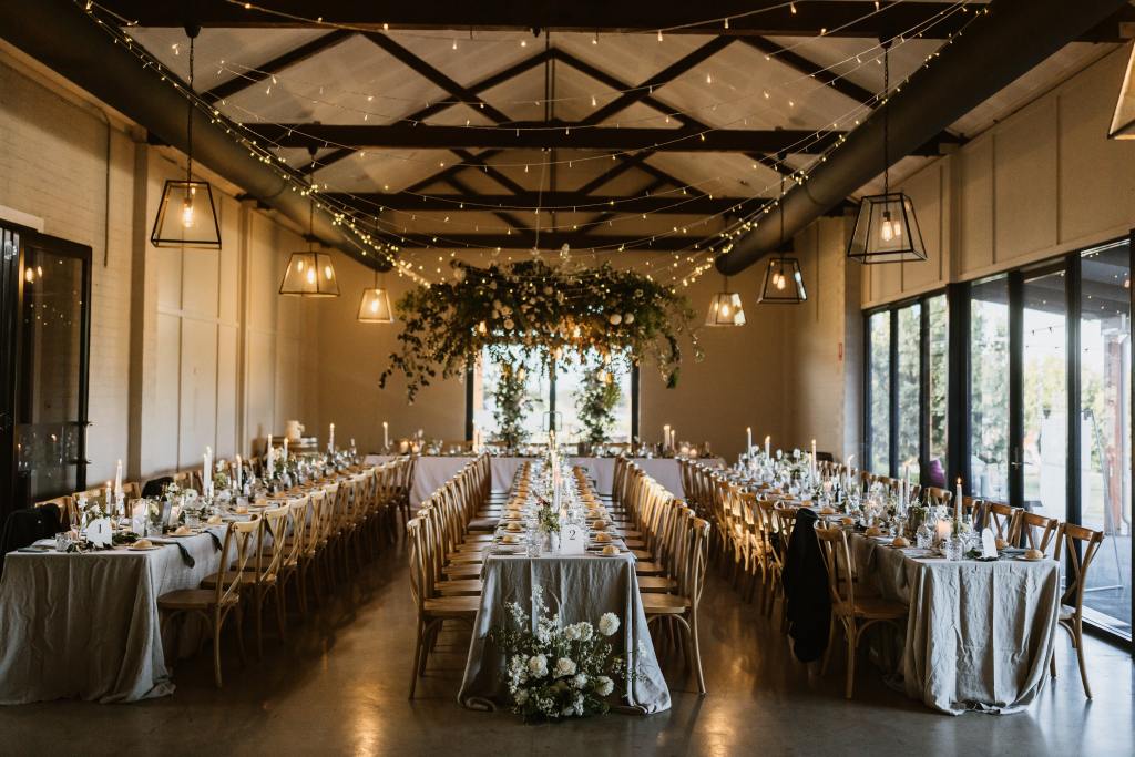 Featuring panoramic views of the mountain ranges as your backdrop, choose to have your ceremony onsite on top of the hill, down by the pontoon or between the lush vines. Featuring high ceilings and stunning exposed beams, this venue is ready to be transformed for your reception. Choose either a seated dinner inside, or dine alfresco underneath the stars.